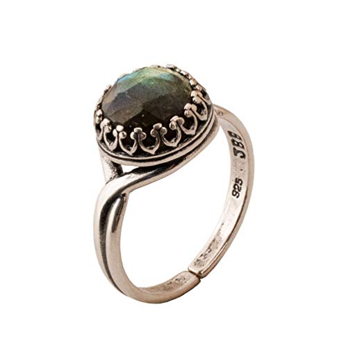 925 Sterling Silver Vintage Style Natural Labradorite Ring - Iridescent Rose-Cut Genuine Gemstone March Birthstone Sizable Ring - Handmade Jewelry Gift For Her - Adjustable Boho Ring - Gift For Women