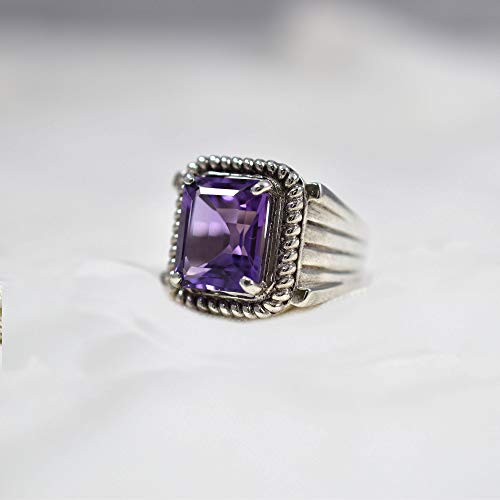 Amethyst Silver Men Ring, Solid 925K Sterling Silver, Faceted Square, Natural, Handmade Jewelry, Rope Design, Four Prong Design, Men's Amethyst Ring, Gift For Him, Good Friday Gift, Size 4-13