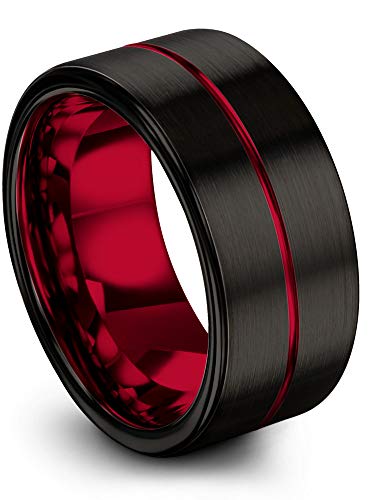 Chroma Color Collection Tungsten Carbide Wedding Band Ring 10mm for Men Women Red Interior with Red Center Line Flat Cut Brushed Polished Comfort Fit Anniversary Size 9.5