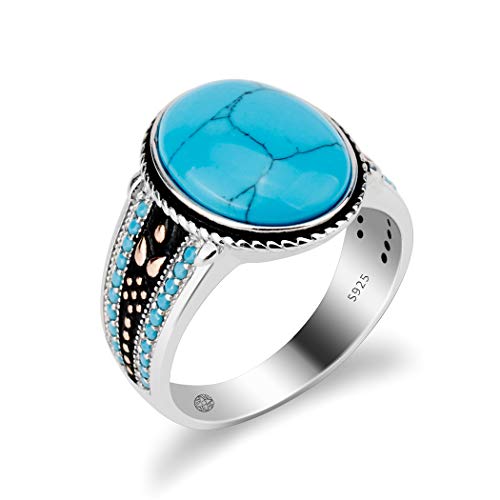 Classic Vintage Blue Turquoise Rings for Men Women - 925 Sterling Silver Turquoise Wedding Jewelry Bands - Gothic Oval Multi Gemstone Stainless Steel Engagement Ring (Size 7-12) (11)