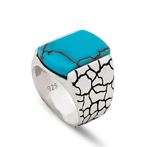 Chicotta Men’s Sterling Silver Statement Ring with Large Flat-top Onyx/Turquoise Gemstone (12, Antique Turquoise)