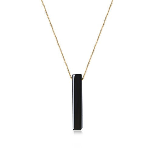 COAI Gold Plated Stainless Steel Obsidian Stone Bar Necklace