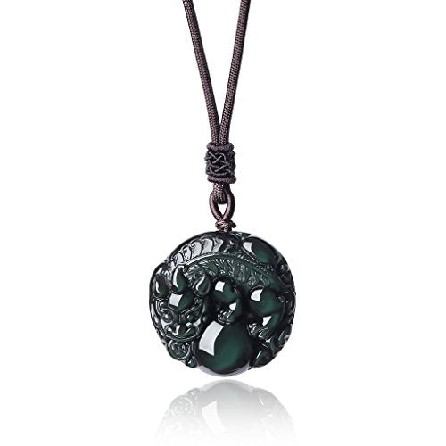 c1lint7785631 Pure Natural Obsidian Pendant Necklace Obsidian Crystal Pendant Necklace Pattern with Extend Bead Chain for Men or Women (Dragon Phoenix Gossip)