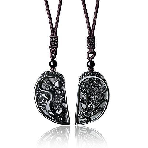 COAI Black Obsidian Dragon and Phoenix Yin Yang Pendant Necklaces for Couples