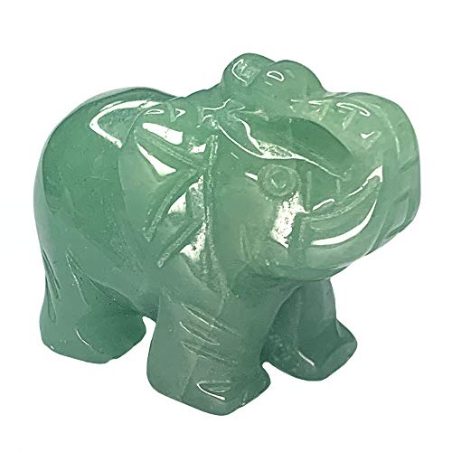 Gemstone Carved Healing Crystals Elephant Statue Figurine Collectible Decor 1.5 inches (Green Aventurine)