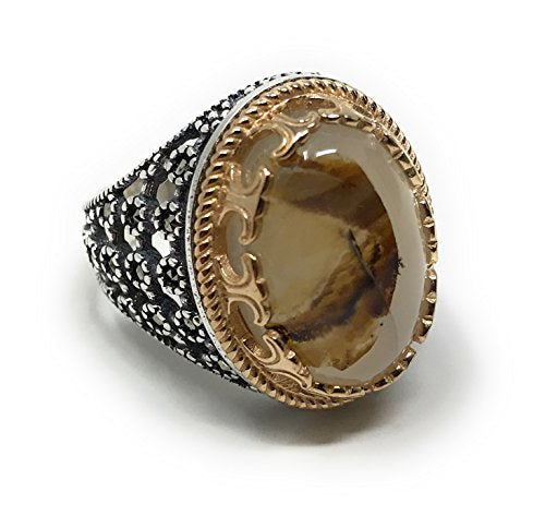 KAR Rare Find 925K Sterling Silver Yemeni Agate(Aqeeq) Men's Ring P5C (11)