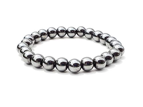 Bliss Creation Stone Bracelet Unisex Gemstone Bracelets 7",Handmade Bead Bracelet 8mm Gemstone Round Beads.… (Hemetite)