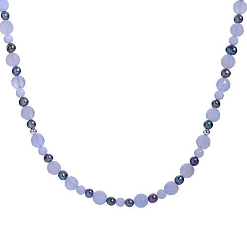 Carolyn Pollack Sterling Silver Blue Lace Agate and Peacock Pearl Gemstone Beaded Necklace 24 Inch
