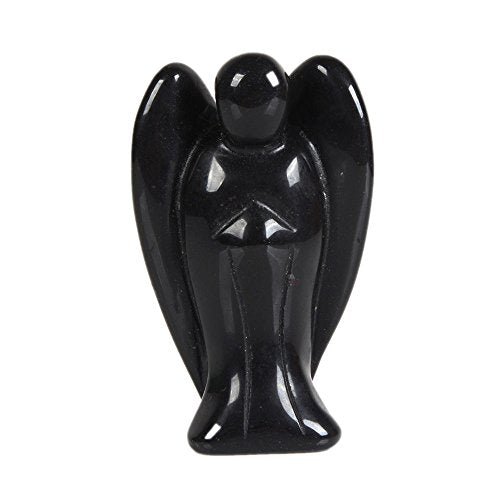 Justinstones Carved Black Obsidian Gemstone Peace Angel Pocket Guardian Angel Healing Statue 2 inch