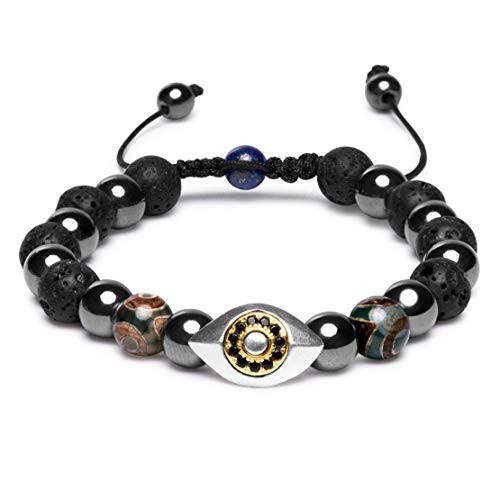 Karseer Vintage Silver and Black Plated Hamsa Evil Eye Stress Relief Reiki Healing Bracelet Natural Hematite Agate Dzi Lava Rock Lapis Lazuli Beaded Macrame Adjustable Anti Anxiety Diffuser Bracelet