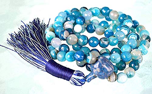 Blue Lace Agate mala Beads Necklace 108 Prayer Beads Handmade japa mala w/Lapis Lazuli guru Bead. Energized Meditation Beads for Chanting Mantra Awakening Chakra - w/Velvet Pouch