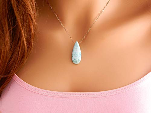 Larimar Pendant Necklace Gemstones with 925 Sterling Silver Classic Jewelry Women