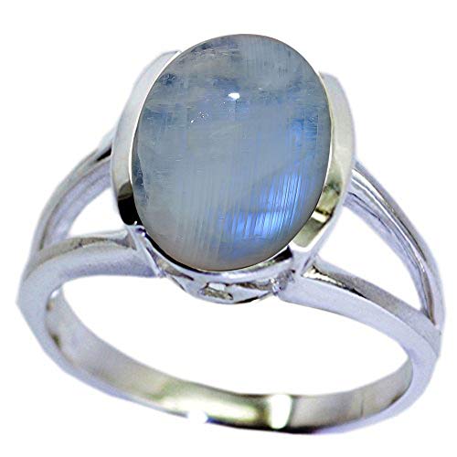 55Carat Real Rainbow Moonstone Silver Ring for Women Handmade Astrological Size 4,5,6,7,8,9,10,11,12