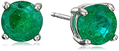 Amazon Essentials Sterling Silver Round Created Emerald Birthstone Stud Earrings (May)