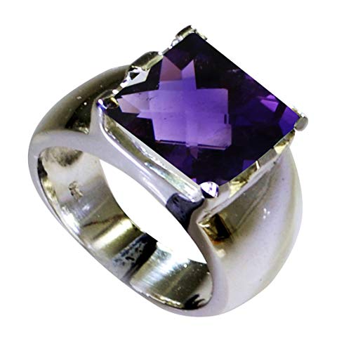 55Carat Natural Amethyst Ring for Men Sterling Silver February Birthstone Rectangle Prong Size 5,6,7,8,9,10,11,12
