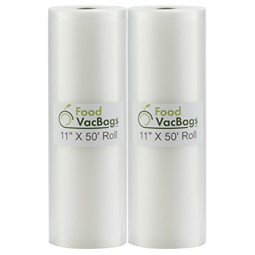 2-Pack 11" X 50' Vacuum Sealer Rolls, Honeycomb Embossed Commercial Grade FoodVacBags, Foodsaver Compatible Storage or Sous Vide Bags (total 100 feet)