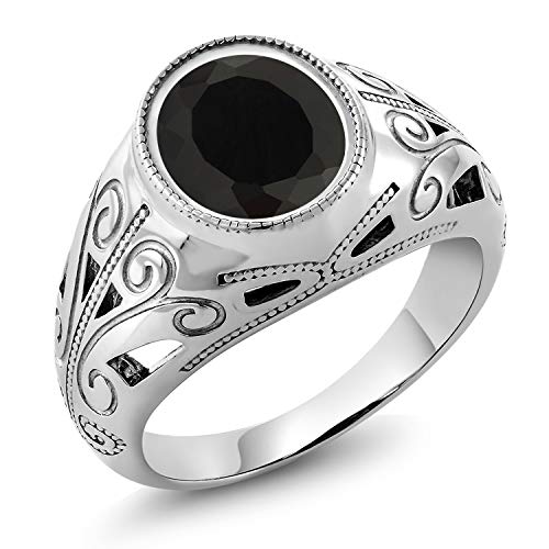 4.29 Ct Oval Natural Black Onyx 925 Sterling Silver Men's Ring size 9