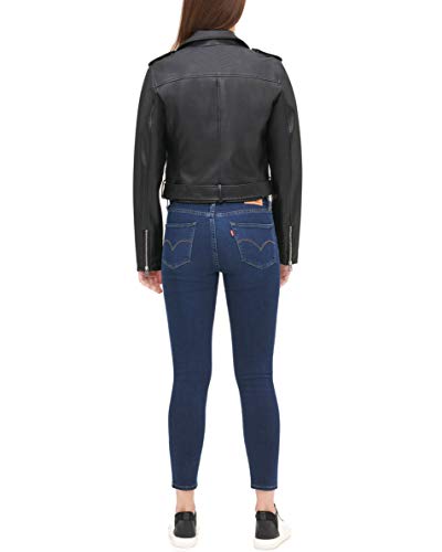 Levi's Women's Faux Leather Asymmetrical Belted Motorcycle Jacket (Regular and Plus Sizes), black, Large