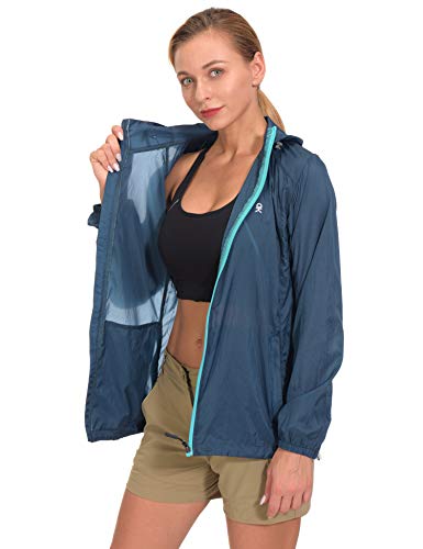 Little Donkey Andy Women's UPF 50 Protection Jacket Lightweight Packable Full Zip Hoodie for Running Cycling Walking, Navy Blue Large