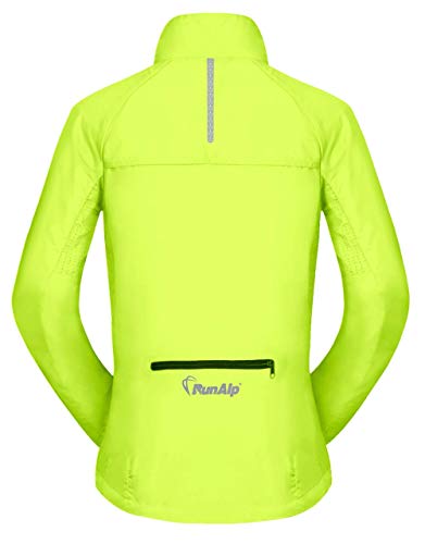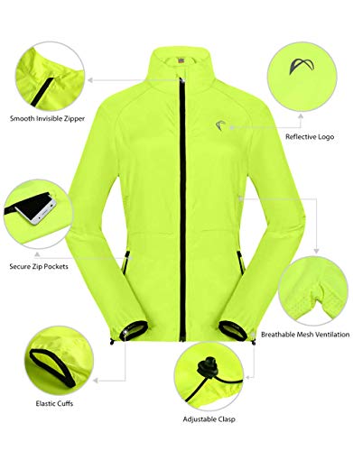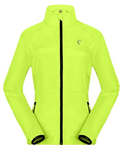 Shelcup Women's Packable Windbreaker Jacket, Lightweight and Visible, Active Cycling Running Skin Coat, Fluorescent green L