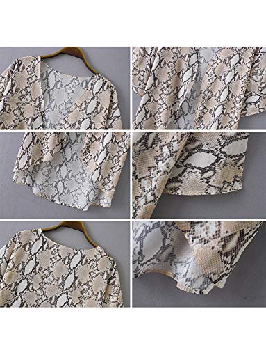 Women's Snake Print Tops Kimono Cover Ups Shirts Summer Chiffon Beach Boho Sheer Cardigan S