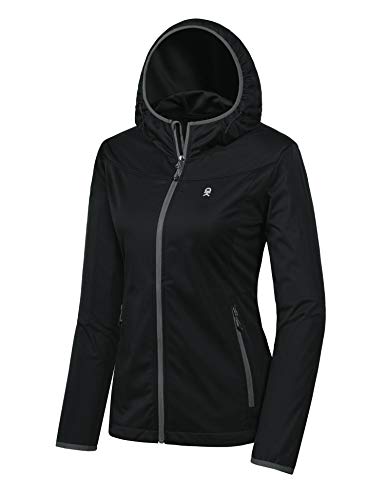 Little Donkey Andy Women's Lightweight Hooded Softshell Jacket for Running Travel Hiking, Windproof, Water Repellent Black Size L