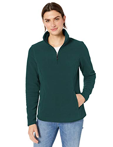Amazon Essentials Women's Classic Fit Long-Sleeve Quarter-Zip Polar Fleece Pullover Jacket, Deep Pine, Small