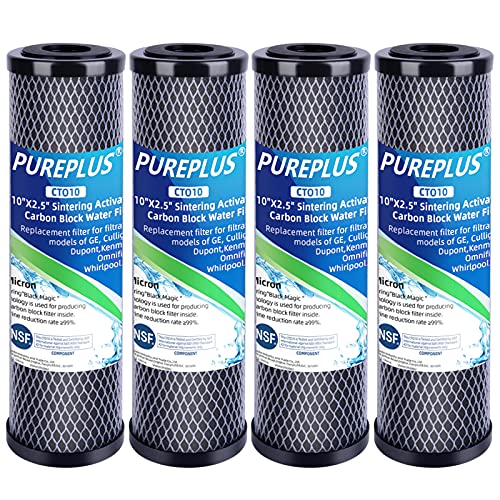 Details: 4 PACK OF 1 MICRON 10"X2.5" WHOLE HOUSE CTO CARBON WATER FILTER REPLACEMENT CARTRIDGE ★Certified to NSF 42 by IAPMOChlorine filter rate >99%★Certified to NSF 372 by IAPMOLead free material This whole house coconut water filter is made of 100% premium coconut shell activated carbon block, filters dust, particles, sediments,sands, rust, Chlorine, provide clean fresh tasting water for your family. BPA free silicone O-ring provides good sealing and high temperature adaptability, food grade material ensures healthy water and avoid use of plastic for environmental friendly planet. Specification:Pcs/Box: 4 units/ boxMicron Rating: 1 MicronFilter Dimensions: Length: 10 inch , Diameter: 2.5 inch Filter Life: Replace every 3-6 months/13000 gallons (Depending on water quality)NSF certified: NSF42 certified by IAPMOFlow rate: 3-5 GPM Working Temperature: 4-52℃/39-126℉Max. Operating Pressure: 100 psi Normal working pressure: 60psiBest choice for your whole house water filtration Compatible Replacement Filters: Ace Hardware 84608, Cornelius COR10B1, Apex IR-40,Cornelius COR10B5, Dupont DWC30001, PFC8002, WFDWC30001, WFPFC8002, WFPFC9001, Pentek 155531-03, 155531-43, C1, CEP-10E, EP-10, EcoLab 9320-1002, Everpure CG5-10, DEV9108-15, Flotec TO1, GE FX12P, FXWTC, GXWH20F,OptiPure CTO-10, OptiPure W-5, Pentair DEV9108-15,NuCalgon 4711-87, OmniFilter TO-1, TO1, TO1-D, TO1-DS, TO1-S, C1, TO1-SS, TO1-SS24-01, TO1-SS24-02, TO1-SS24-05, TO1D, TO1DS, TO1S, TO1SS, 46942, PureMark PFS10B1, PFS10B5, Shurflo 15-056-10, True Value 583-377, Watts F109009, Whirlpool WHEF-WHWC, WHKF-WHWC, RF-1010. Compatible with reverse osmosis filter systems of brands: GE, Culligan, Dupont, Kenmore, Omnifilter, Whirlpool NOTE: This is a compatible spare part and the manufacturers' names and part numbers have been used for reference purposes only.