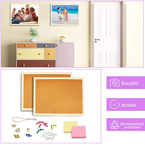 Details: Product description Color: Cork Wood Bulletin Boards | Size: 16X13 inch We know how important it is to have durability when it comes to cork bulletin board, so let us simply provide you with a better experience! Durable surface tuokeogo bulletin board is constructed with environmentally friendly natural cork surface, self-healing, quite durable and lasting long. Long Lasting Use The wooden board is light but tough, and easy to install and carry, the wooden frame is completely free of chemicals. The bulletin board with high-fiber linen can be used repeatedly for a long time, easy to nail without effort ensure this cork bulletin board will last for years. Creative Decoration Bulletin boards are ideal for displaying memories and reminders, easy to install and remove. Cork board is very practical and decorative, very suitable for home, office, school classroom, children's room; suitable for memory photo, travel map, weekly plan, fixed notes, messages, pictures, memo, calendar, menu, etc. Quality assurance All items are stored in a gift box in an orderly manner. In the process of receiving or using the product, if you have any questions, please feel free to contact us, we will respond to your questions within 24 hours. Package content 2 x Bulletin Board 2 x Post-it 20 x Bulletin Board Pins