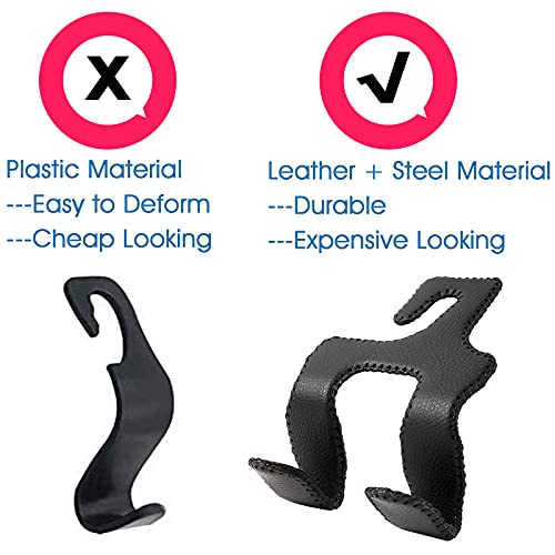- MATERIAL - The car hooks are made of Leather & steel - make them much stronger than the plastic and wire versions and match car’s interior perfectly as well