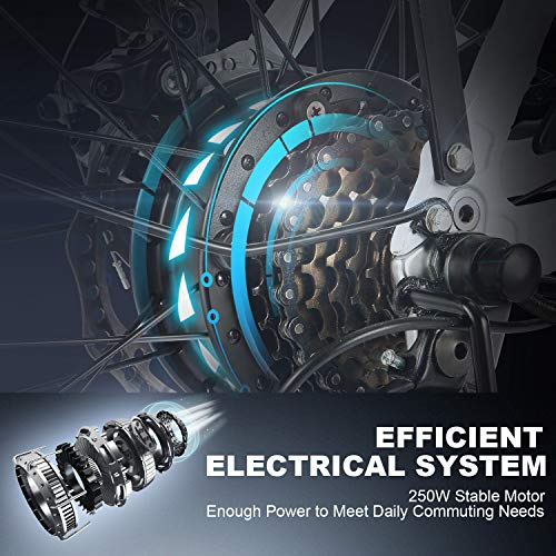 - EXCEPTIONAL PERFORMANCE : The 26” wheels and 1.95” high-volume e-cruiser tires deliver a luxuriously smooth ride. At the heart of the ebike is our large capacity 12.5 AH lithium-ion battery,The 250W motor lets you go As fast as 16 mph for up to 35 miles .You can charge on/off the ebike by your convenience.