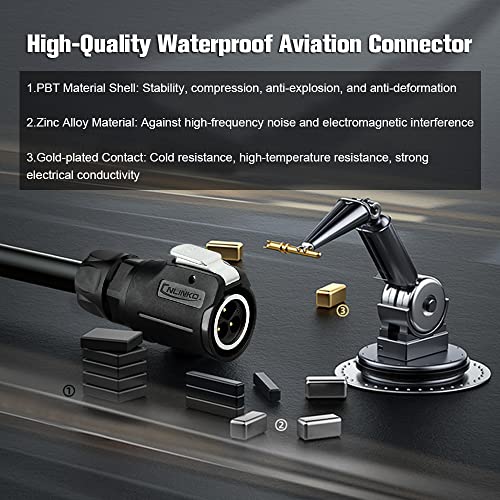 - High-Quality Material: Our 3 pin connector uses a PBT material shell that imports from abroad with stability, compression, anti-explosion, and anti-deformation. Use zinc alloy material flanges seat, against high-frequency noise and electromagnetic interference. Using gold-plated contact with the superior performance of corrosion resistance and electrical conductivity effectively deals with temperature rise.