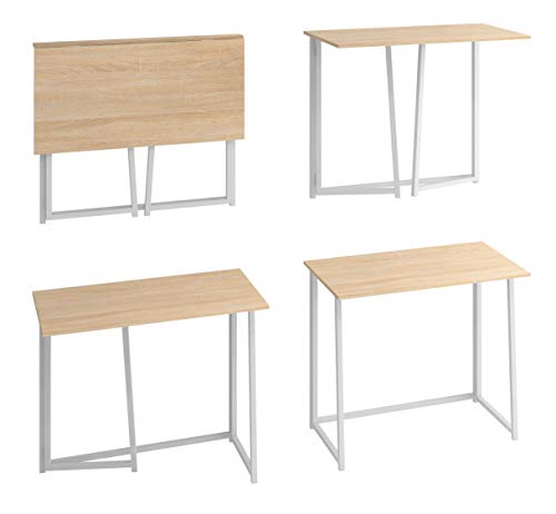 - 【Modern concise compact desk】The modern concise look is complemented by a high-quality desktop and a sturdy metal frame so that the desk can fit perfectly into your home. With its folding design, You can fold or unfold it in a few seconds without any assembly,and it only takes up a small space, which can save your space.