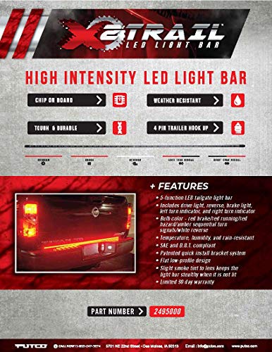 Details: Make your truck complete with the best full-function tailgate bar around. Redline plugs in to your current rear lighting setup to add 5x as much running, brake, turn signal, and reverse lighting. Plus, Redline is built tougher, shines brighter, and stays on longer. The only rear accent lighting without competition.