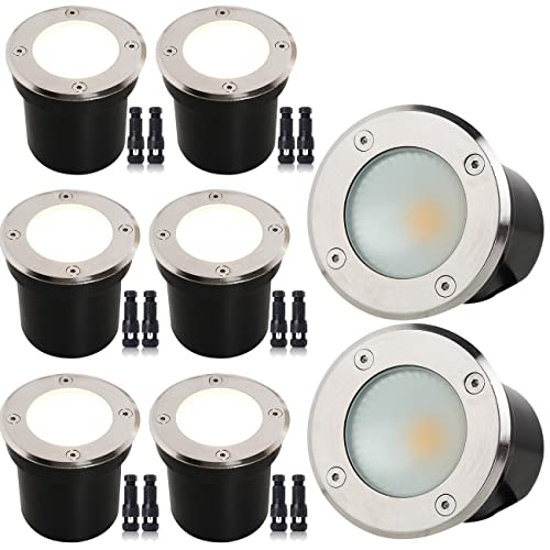 - PREMIUM GRADE COMPONENTS: 8Pack 7W COB LED Light,900 Lumens per one The convex lens are clear, make these buried landscape lights appear brighter than the typical one. High temperature tempered soda-lime glass for high-impact resistance. High quality LED light chip,great for illuminating your Patio,Garden Path Yard Deck. Lifetime up to 50,000 hours.