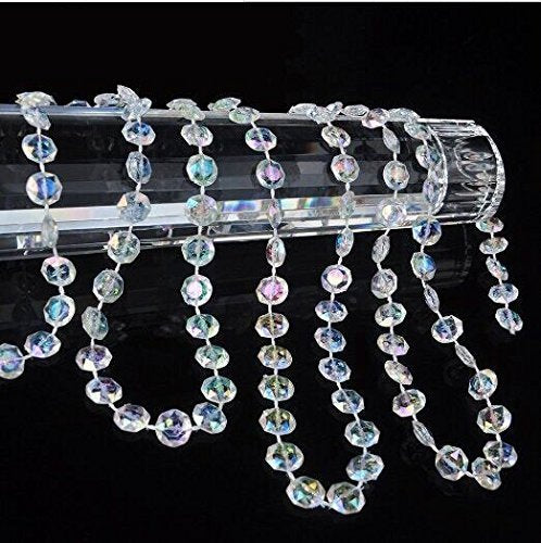 Details: Brand: Meihuasheng Acrylic Crystal Strand Material: Acrylic Plastic Flat Bead. Top Quality Laser cut clear crystal beads. Length : 99 Feet (1 Roll) Color: Clear AB Color l Feature: - Unique Edges. It dangled very fabulous and sparkled the shine when hanging the crystal clear beads garland in the room or somewhere you want. - Easy to manipulate. These clear acrylic beads are secured by a white thread so you could easily cut to any desired length you need. - Pretty Accessory. Beautiful color, best DIY Accessories, "bling" to your decorations. Use this ornament to add a glamorous look, beautiful colors and good energy to your space. Application: The clear crystal beads chain can be used indoors and outdoors decoration or DIY crafts. Ideal for wedding receptions, party, prom, festival, baby rooms, coffee house, restaurant decoration. As an embellishment to the doorways, chandeliers, lamp shades decorate, drop light, door curtain, window trim, wedding centerpieces, dangle kissing balls or other bridal decorations, do art crafts projects, holiday trees, Christmas tree decor, and natural branches decorations. NOTE: 1. This item size information is just for reference only, and allow 1-2 inch differences due to manual measurement. Thanks. 2. Due to the difference between different monitors, the picture may not reflect the actual color of the item. Service: - If you have any question, please contact with us for the first time. We will reply as quickly as we can. - If you are satisfied with our service and product, please show your objective evaluation. Wish you have a good shopping experience in here.