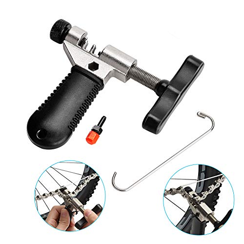 - EASY TO BREAK & RECHAIN: The bike chain splitter with chain hook makes it easier and faster to remove and insert pins in your bike chain while keeping it firmly in place to prevent it from moving. It’s compatible with 7, 8, 9, 10, 11 and single speed bicycle chains to install and remove pins
