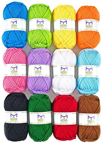 Mira Handcrafts Large Yarn Skeins of 50g each - 12 skeins in 1 pack - Great DK yarn for Knitting and Crochet, accent work and multicolour yarn projects!