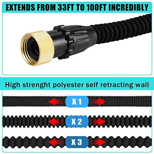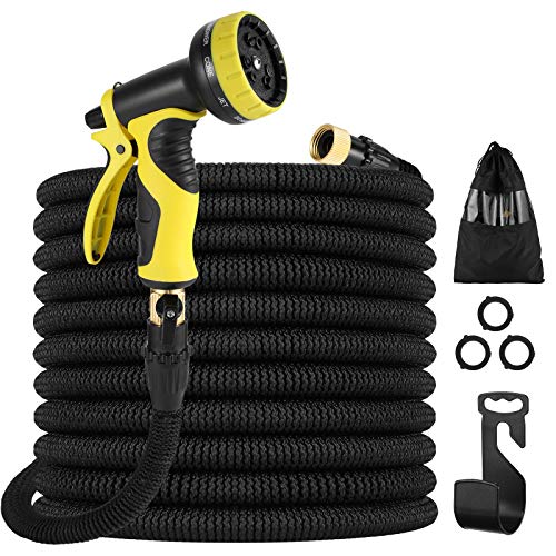 Details: WHY YOU WILL CHOOSE OUR GARDEN HOSE? 1.This Garden Hose made of extremely 3 layers of natural latex core and 3750D tough outer weave.The high quality brass fittings will corrosion resistance and no to rust,the Garden Hose's standard 3/4” brass connector match any US standard faucet! 2.This Garden Hoses are completely leak-proof,have anti-rupture functions.The Garden Hose is enough to use it for a long time,no need to buy Garden Hose every season. 3.Our Expandable Garden Hose equipped with a high-quality rotating Garden Hose nozzle.This Garden Hose meets all of your watering needs.For example,you can use our Garden Hose to washing car&cleaning lawn&showering pet. 4.This Flexible Garden Hose is lightweight to make caddying the Garden Hose around easier.We have also prepared free Garden Hose storage bag and Garden Hose holder for you.They will help you save space. Package Include: 1 x 50ft Expandable Garden Hose 1 x Spray Nozzle (9 Modes Selectable) 1 x Nylon storage pouch 1 x Hanging hook 1 x Use Manual 3 x Spare Sealing Rings Warm Prompts: -The Garden Hose can withstand water pressure 3-12 Bar -Always drain the water from the Garden Hose when not use -Store the Flexible Garden Hose in the shade or keep it covered -Do not walk on the Garden Hose under the hydraulic pressure