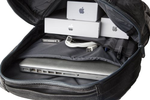 Details: The Alchemy Goods Brooklyn Backpack is a stylish and spacious urban pack featuring a padded laptop sleeve. Excelling at keeping you organized in the classroom or at the office, its interior boasts 3 internal pen slots and 2 slip pockets. Other essential items can be kept secure in two generously sized exterior zip pockets. Comfortable to wear, it is made from durable, recycled and highly water resistant bicycle tube and features padded nylon shoulder straps and a padded back panel. Measures 18 Inch by 12 Inch by 4.5 Inch.