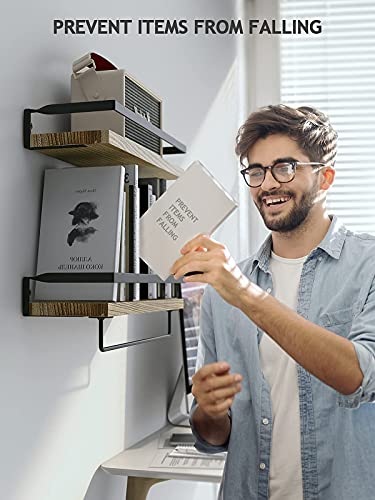 - High Weight Capacity - Crafted with Paulownia wood, powder-coated metal bracket, and torched finish, the floating shelves are sturdy and strong enough for holding 40lbs of items. Decor and organized your home more beautifully and neatly.