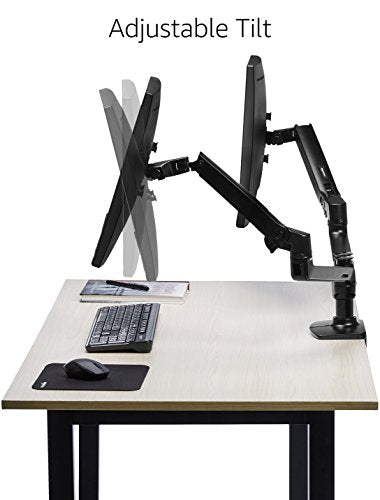 Details: Product Description Amazon Basics Dual Monitor Stand - Lift Engine Arm Mount, Aluminum - Black From the Manufacturer Amazon Basics