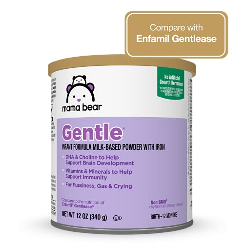 - GENTLE ON TUMMIES: Mama Bear Gentle Infant Formula Powder is gentle on tiny, tender tummies, so it's easier to digest; Helps reduce fussiness, gas and crying; Compare to Enfamil Gentlease