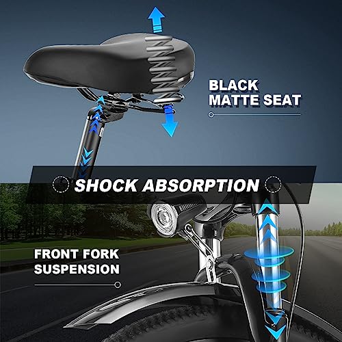 - 🚴♀️[ERGONOMIC DESIGN & CUSHY SEAT] Lightweight & durable low-step aluminum frame makes it easy to get on and off; Swept-back handlebar, and a wide seat that keeps the rider in an ergonomic riding position, back upright. All are designed for the pursuit of a more relaxed riding experience