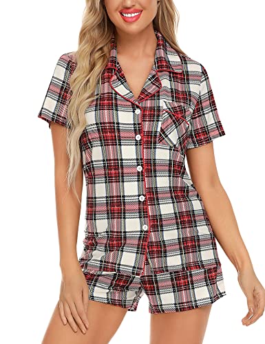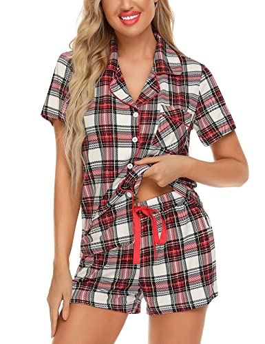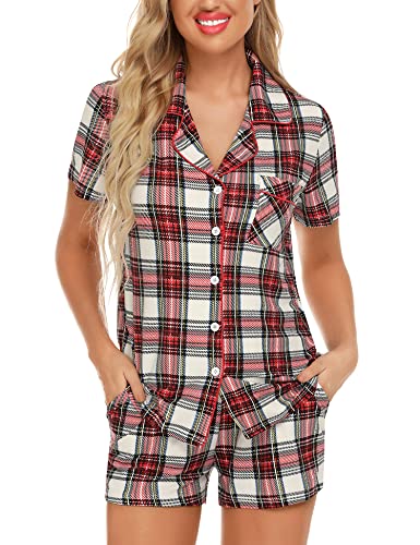 - ❤【NEW DETAILS DESIGN PJ SETS】Two side pockets have been new added to theses pajamas shorts. FULL BUTTON FRONT PAJAMA tops hits at hip, chest pocket with notch collar short pj sets. This pajama top is easy to get on and off, making it perfect for nursing your newborn at home. Breastfeeding mommy can easily breastfeed just by releasing the two buttons of these pj sets.