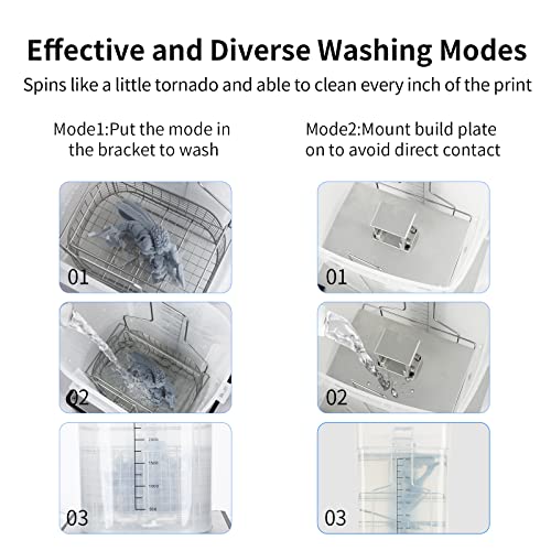 - Effective and Diverse Washing Modes: There is a propeller in the bottom of wash cure station, when work, it spins the solution like a little tornado and changes spin direction halfway through the wash , which creates the perfect flow to clean every inch of the print. 2 modes of Cleaning: 1. Basket washing, Remove the model and put it into the basket for direct cleaning; 2. Suspension washing, Directly hang the print platform on the basket or cleaning stand to clean, reducing exposure to resin