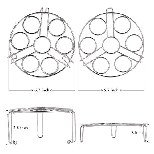 Details: With Aozita stackable egg steamer rack you can steam/make hard boiled 14 eggs one time in a few minutes. It is also used as a steam plate for steamer some other food, or as cooling rack, pot stand rack, food holder etc. Parts Included: 2 Pack steamer Rack(Stackable) Product Specifications: Size: Fits inside 5/6/ 8-quart cooker Item Diameter : 6.7 inch Item weight: 0.55 pounds Material: Food-Grade Stainless Steel Satisfaction Guaranteed If you have any issue with our products, please don't hesitate to contact us, we will try our best to find a satisfactory solution for you within 24 hours.