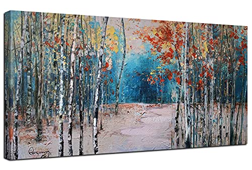 - 💙Birch Tree Wall Art Size: 40inx20in(100x50cm) One Panel Large Size Painting Prints Framed Ready to Hang. Has handpainted gel embellishments.