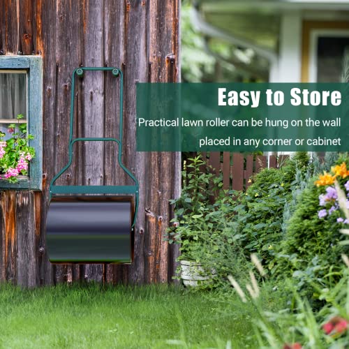 Details: Why choose ARNOT steel lawn roller?Carefully designed and crafted lawn roller makes all the difference in the garden. Highly durable steel-style construction won't dent or rust; even though it's the same style, the quality is completely different. The rounded end caps won't gouge or leave dents in your turf either. Don't let its size fool you-it's easy to use, the roller is 16x20-Inch and weighs 155 pounds when filled with water. It's more stable on the lawn and less likely to be punctured. The steel lawn roller is a strong choice for the most difficult uneven lawns.Combat damage to your lawn caused by the freeze/thaw cycle with this lawn roller! ★Rounded edge design of the lawn roller for easier and gentler rotation★U-shaped handle for easy pushing and pulling, even in small areas★Lawn roller includes a tethered expansion drain plug★Lightweight when emptied for easy transport and storage★Durable black powder coating on lawn rollers★The versatile lawn roller is also great for leveling horse pasturesSpecifications: Material: steel Color: Green and black Dimension: 20" x16''x 50"(L x D x H) Roller Capacity: 16 Gal Product weight: 19.5Lbs
