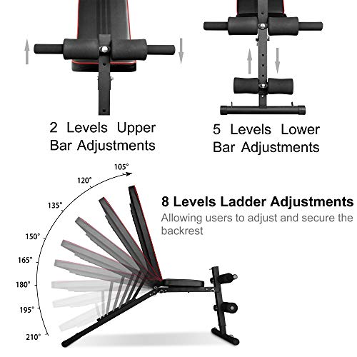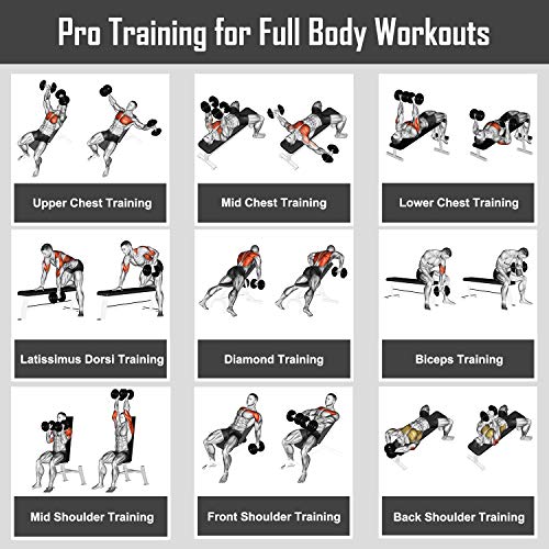- 【Adjustable Dumbell Bench for Full-Body Workout】Designed with 7 adjustable backrest from 19.69 inch to 44.10 inch for full body workout, you just pull the fast bolt, adjust the place which fit yourself.The adjustable weight bench is ideal for working out and training on your chest, shoulders,back, abs,and more.